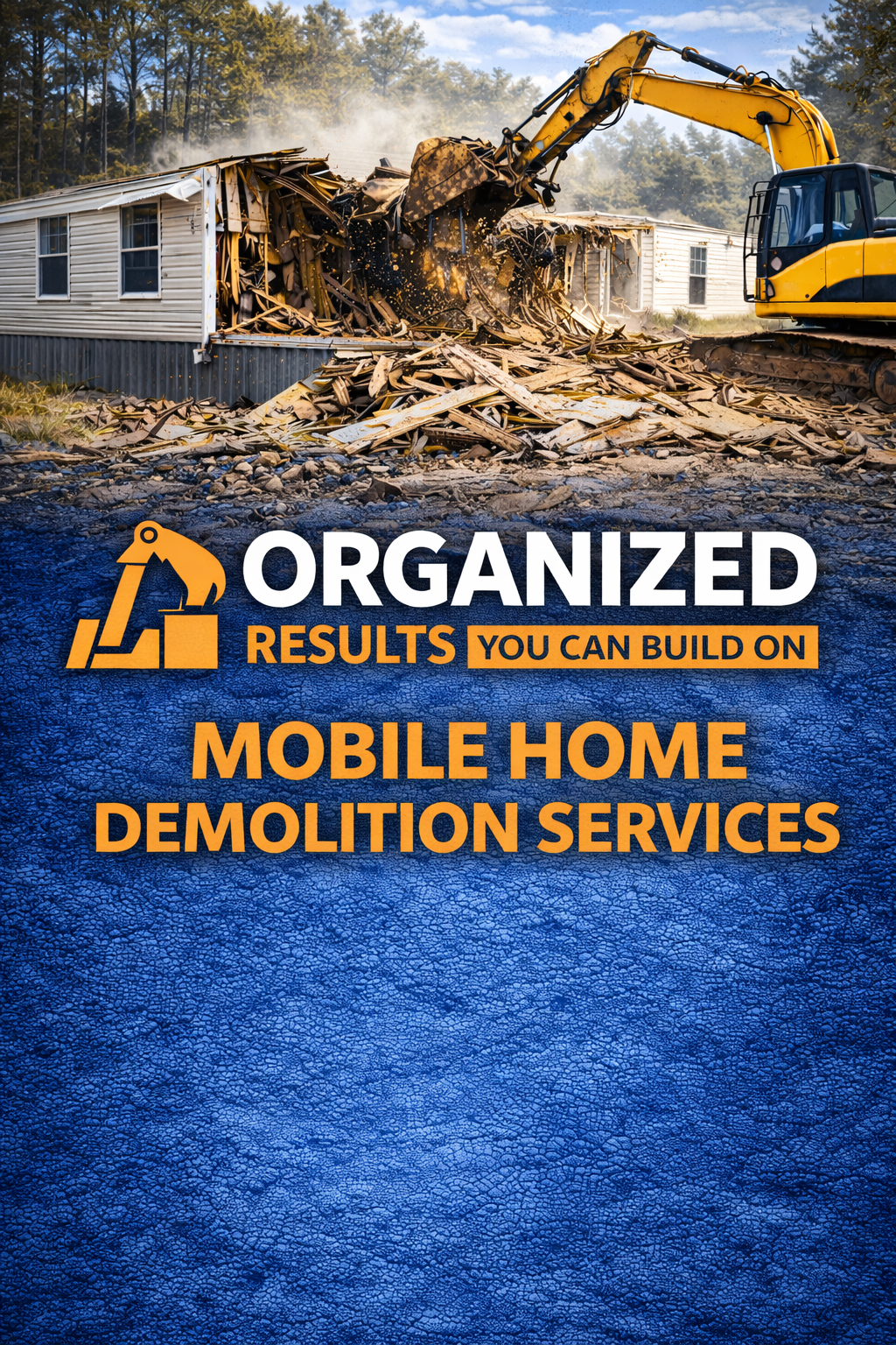 Organized provides full-service mobile home demolition with a focus on safety, efficiency, and clean results. Whether it’s a single-wide, double-wide, or an older manufactured home that’s no longer safe or usable, our crews handle the entire process from teardown to debris removal.